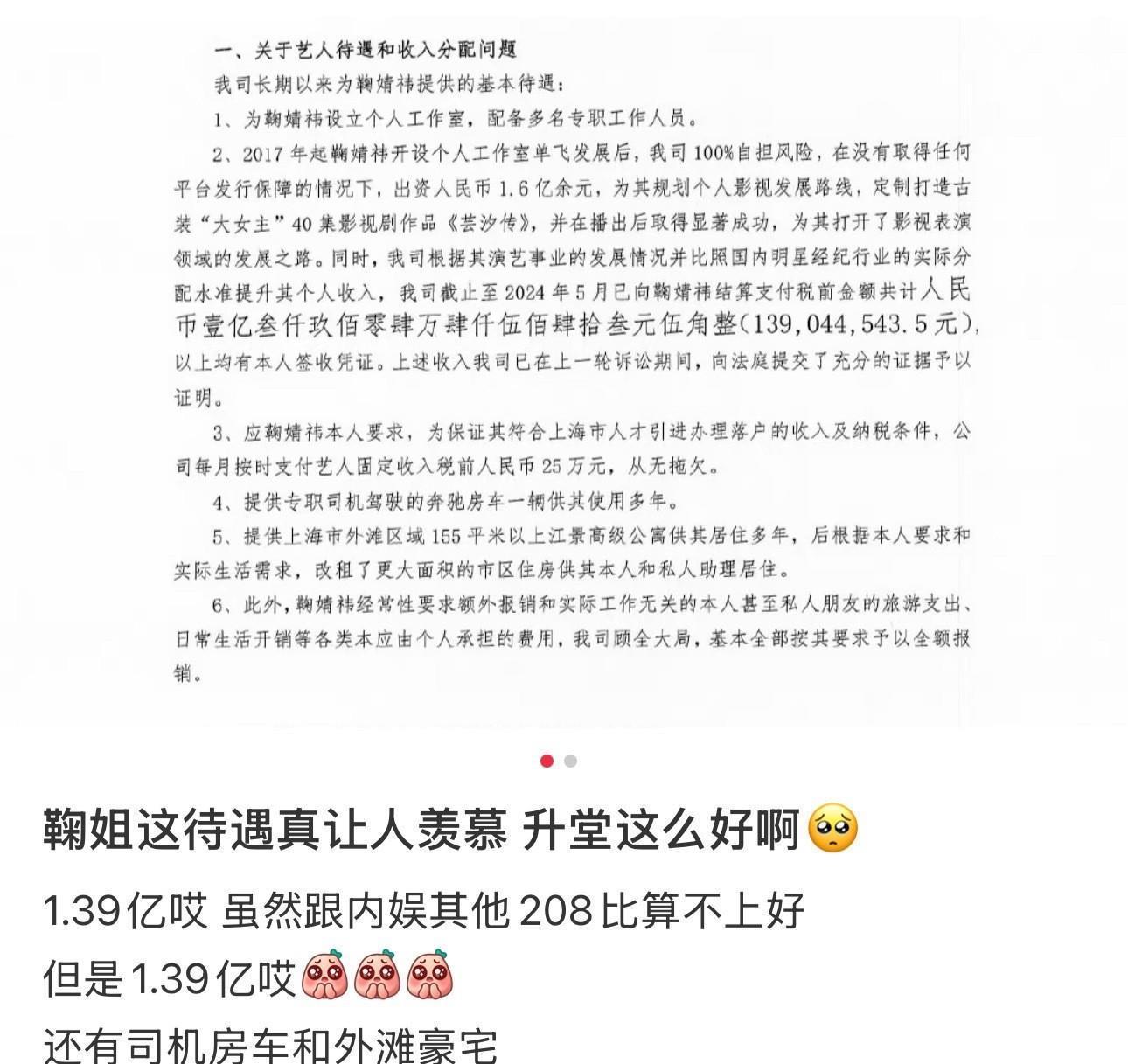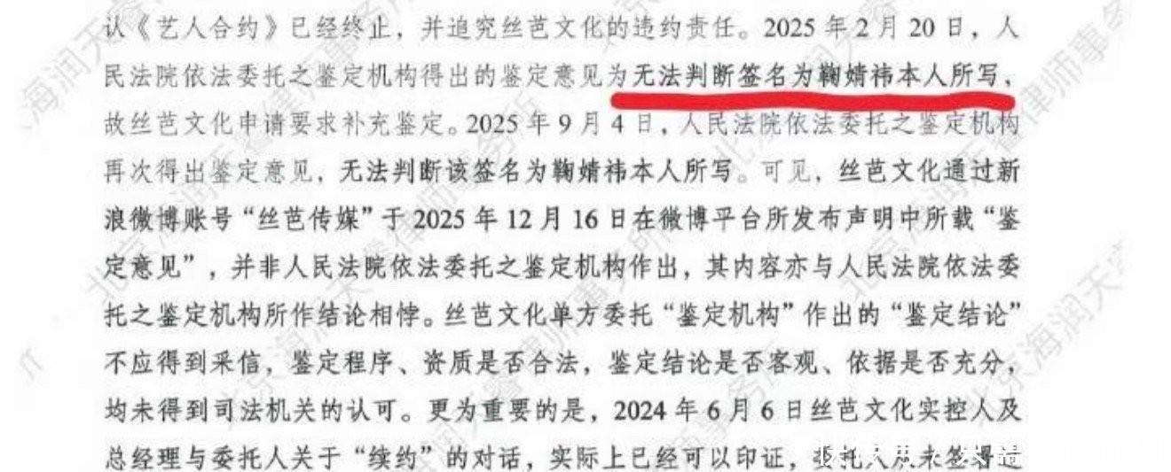丝芭的声明堪称舆论引导教科书:抛出年均1390万的“天价”数字,搭配奔驰房车、外滩江景房等福利,试图塑造“公司厚待艺人”的形象。可这背后,是对核心争议的刻意回避——法院两次无法确认的“伪造签名”补充协议,被轻描淡写略过;鞠婧祎方指控的“双重合同”“截留分成”,更是只字未提。明眼人都能看出,公司是想利用公众的仇富心理,将法律纠纷转化为“明星贪心”的道德批判。